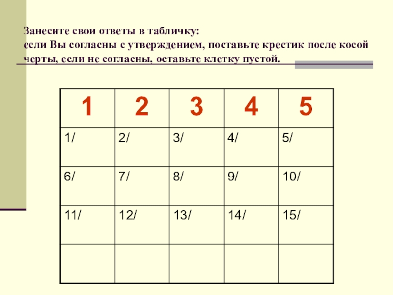 крестик после косой черты, если не согласны, оставьте клетку пустой.