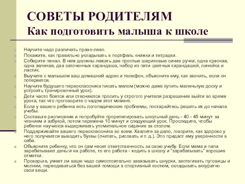 Слайд 14СОВЕТЫ РОДИТЕЛЯМ