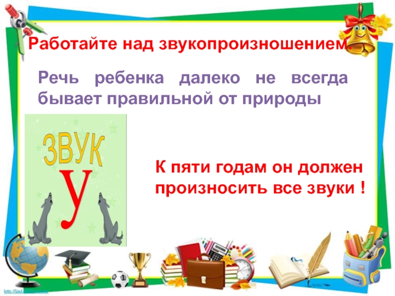 Слайд 11 Работайте над звукопроизношением.