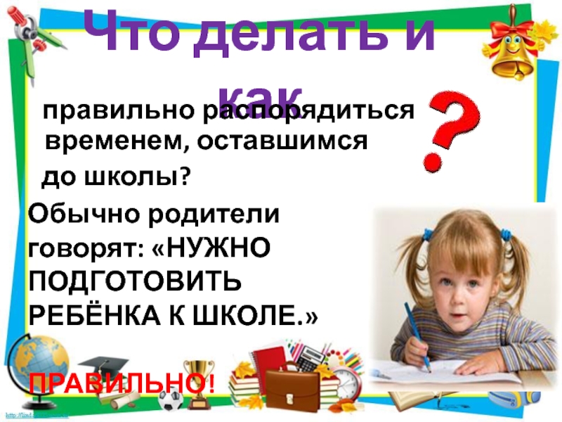 Обычно родители говорят: «НУЖНО ПОДГОТОВИТЬ РЕБЁНКА К ШКОЛЕ.»