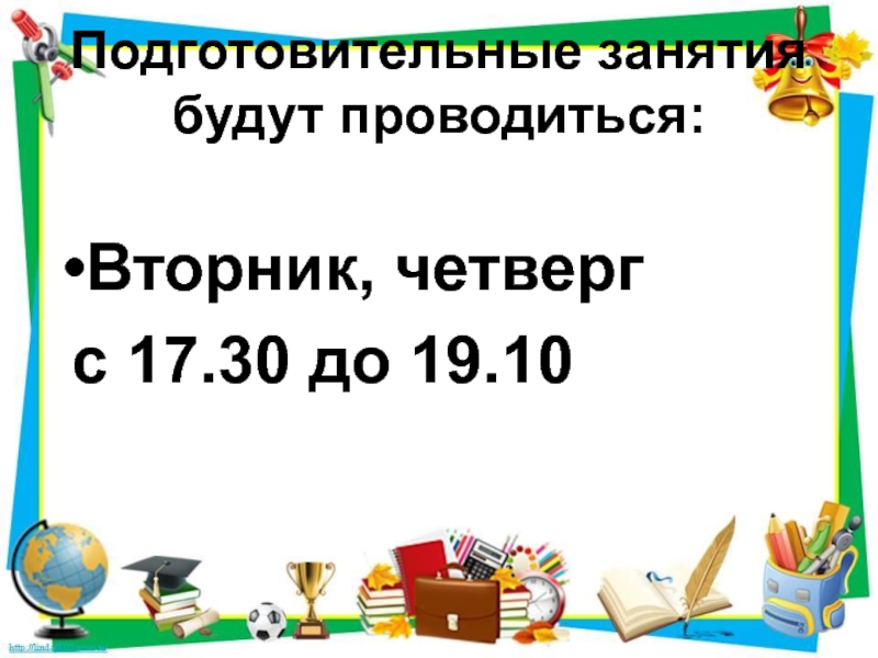 Слайд 19Подготовительные занятия будут проводиться: