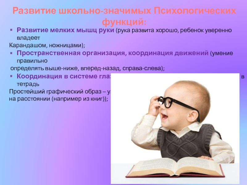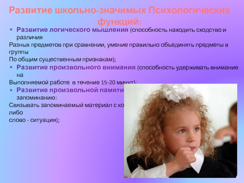Слайд 6Развитие школьно-значимых Психологических функций: