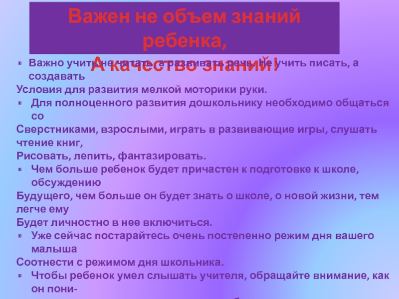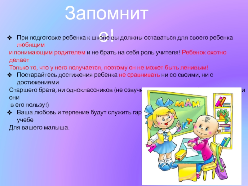 При подготовке ребенка к школе вы должны оставаться для своего ребенка