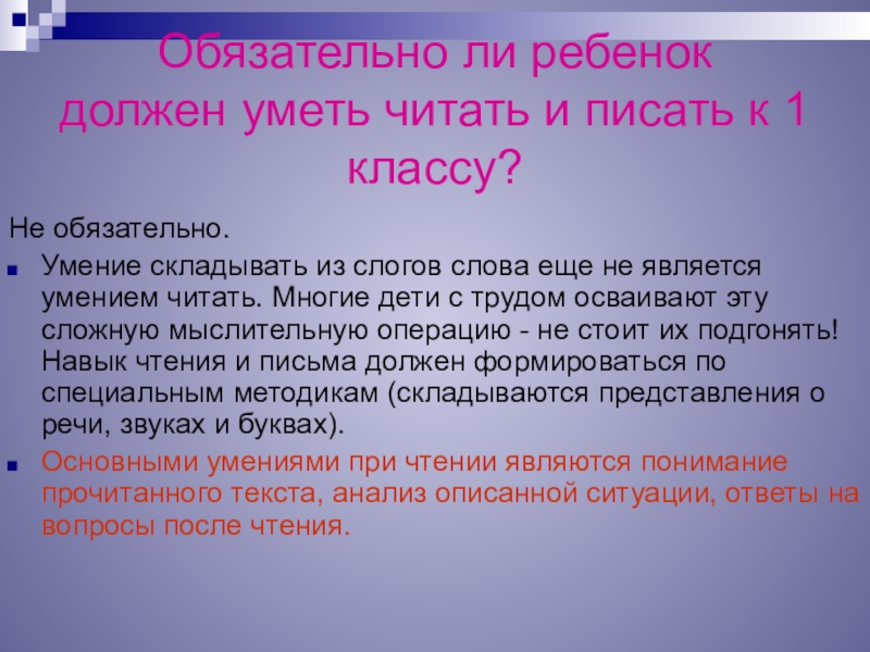 Слайд 39С шести или с семи лет нужно отдавать ребенка в 1