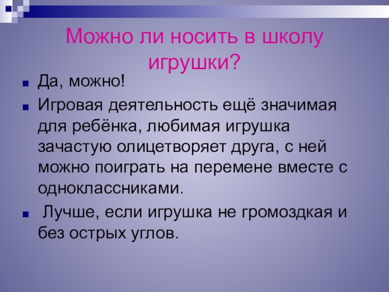 значимая для ребёнка, любимая игрушка зачастую олицетворяет друга, с ней можно поиграть на перемене вместе с одноклассниками.