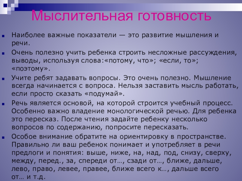полезно учить ребенка строить несложные рассуждения, выводы, используя слова:«потому, что»; «если, то»; «поэтому».