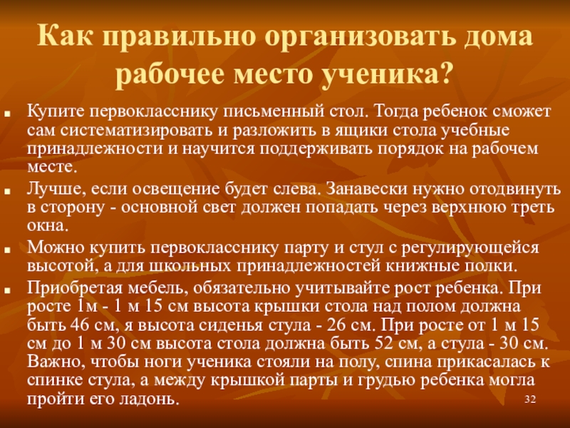 Слайд 32Как правильно организовать дома рабочее место ученика?