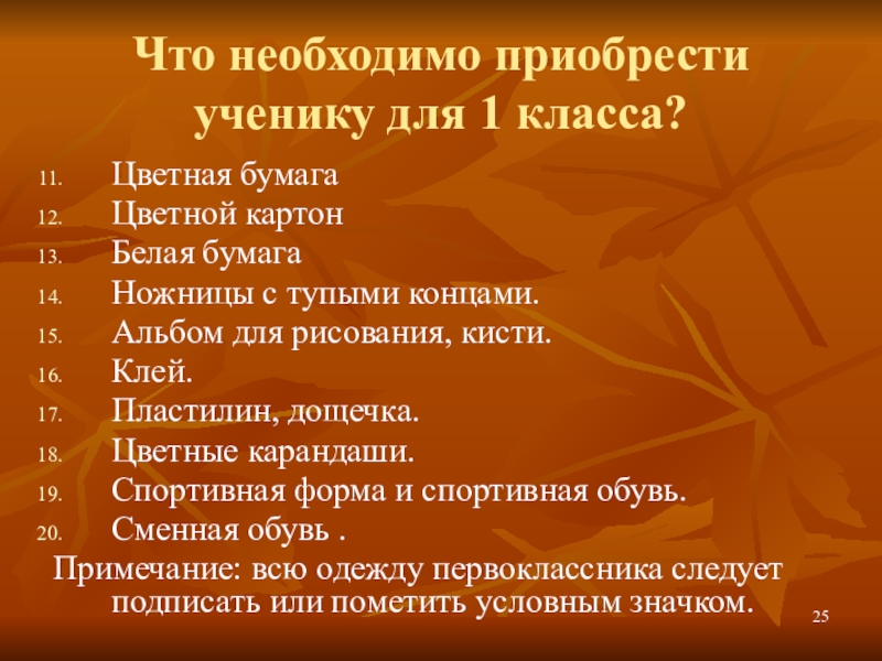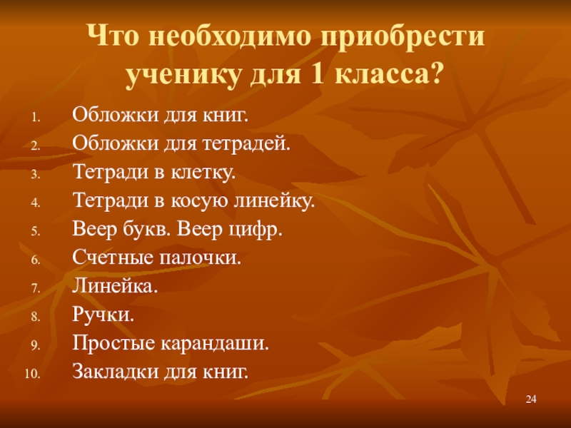Слайд 24Что необходимо приобрести ученику для 1 класса?