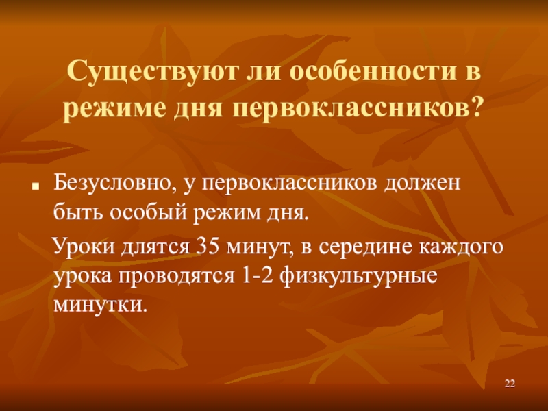 Уроки длятся 35 минут, в середине каждого урока проводятся 1-2 физкультурные минутки.