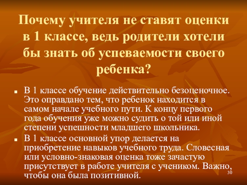 Слайд 30Почему учителя не ставят оценки в 1 классе, ведь родители хотели