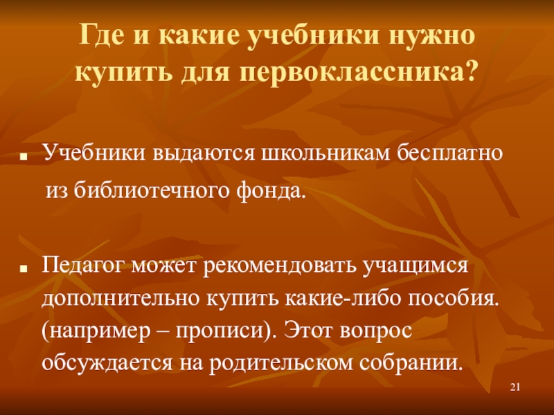 Слайд 21Где и какие учебники нужно купить для первоклассника?