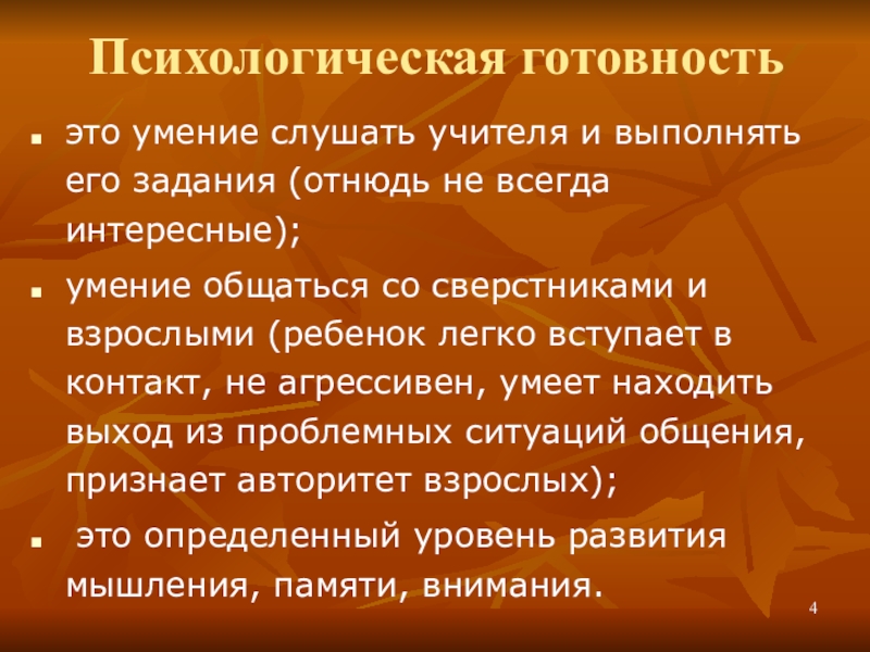 это умение слушать учителя и выполнять его задания (отнюдь не