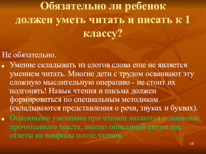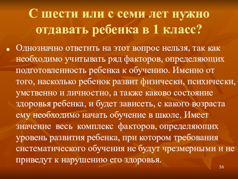 Слайд 36С шести или с семи лет нужно отдавать ребенка в 1