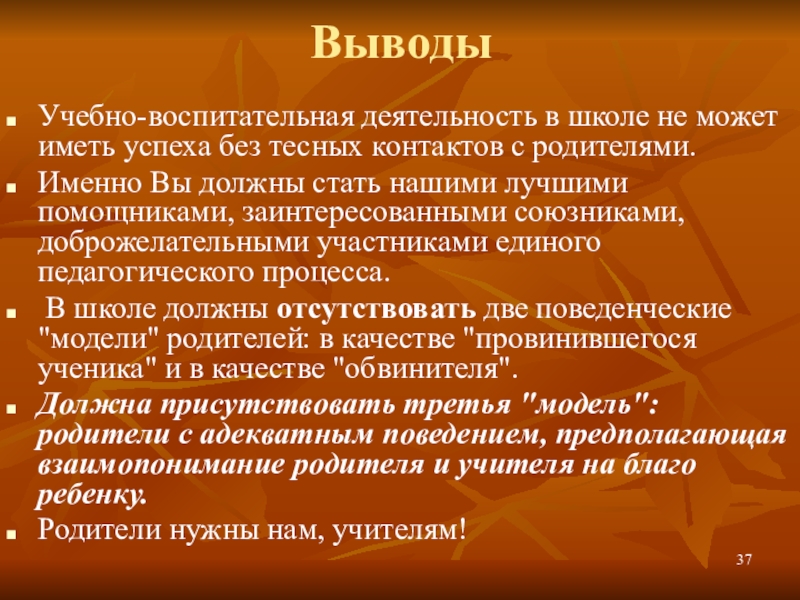 Именно Вы должны стать нашими лучшими помощниками, заинтересованными союзниками, доброжелательными участниками единого педагогического процесса.
