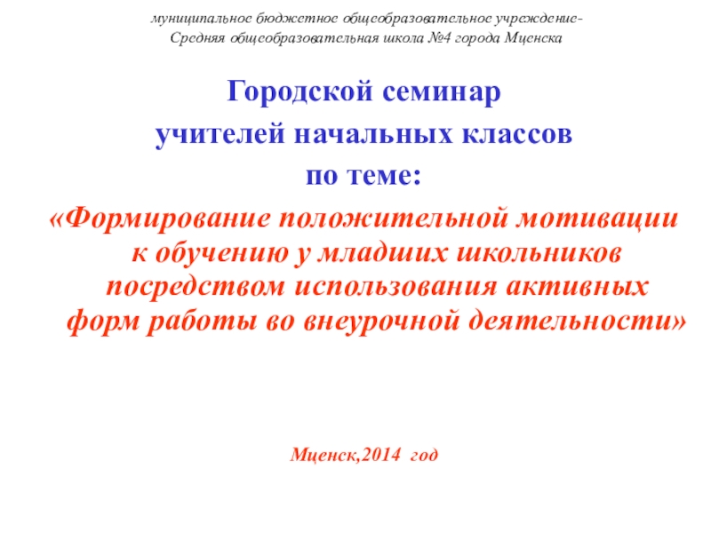 муниципальное бюджетное общеобразовательное учреждение-  Средняя общеобразовательная школа №4 города МценскаГородской семинар учителей начальных классов по