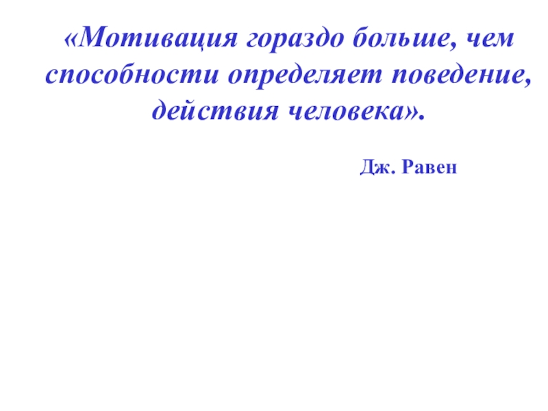 Слайд 2«Мотивация гораздо больше, чем способности определяет поведение, действия человека».