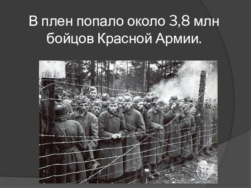 Слайд 3В плен попало около 3,8 млн бойцов Красной Армии.