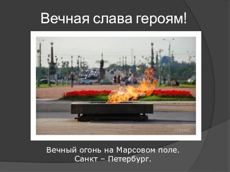 Вечная слава героям!Вечный огонь на Марсовом поле. Санкт – Петербург.