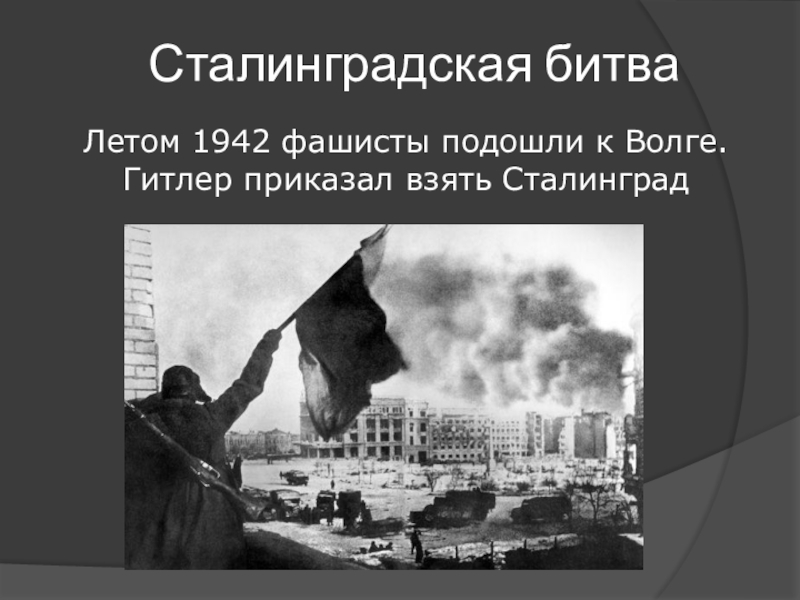 Сталинградская битваЛетом 1942 фашисты подошли к Волге. Гитлер приказал взять Сталинград
