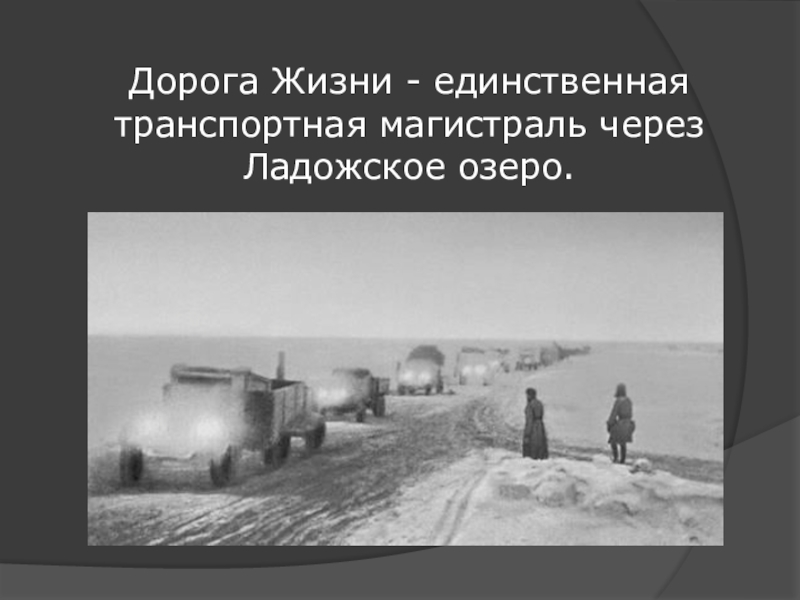 Слайд 10Дорога Жизни - единственная транспортная магистраль через Ладожское озеро.