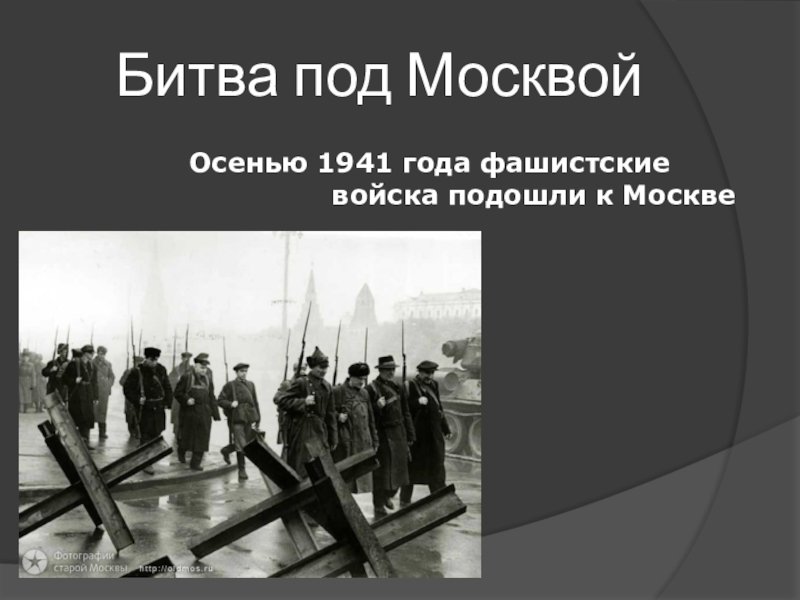 Битва под МосквойОсенью 1941 года фашистские войска подошли к Москве