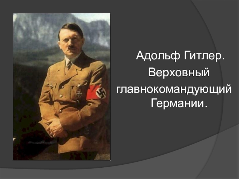 Адольф Гитлер.  Верховныйглавнокомандующий Германии.