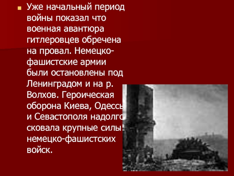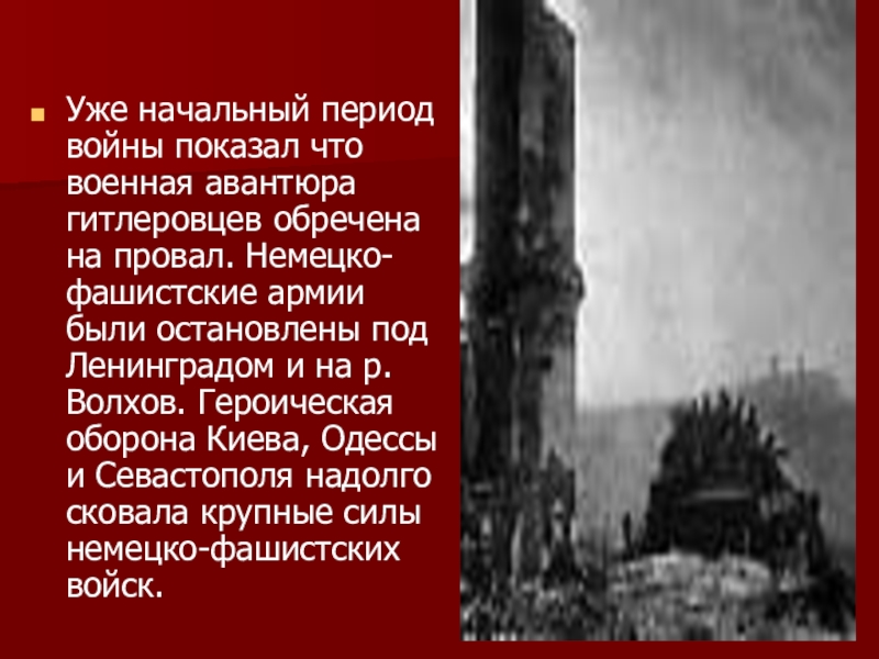 Слайд 17Уже начальный период войны показал что военная авантюра гитлеровцев обречена на