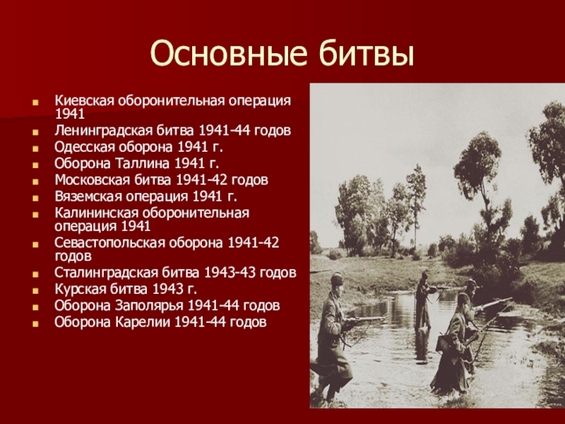 Слайд 9Основные битвы