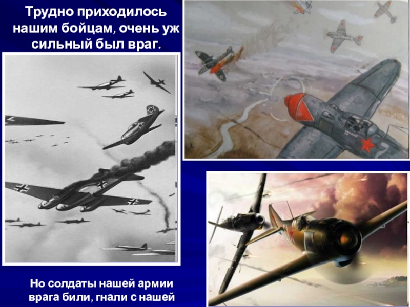 Слайд 8Трудно приходилось нашим бойцам, очень уж сильный был враг.