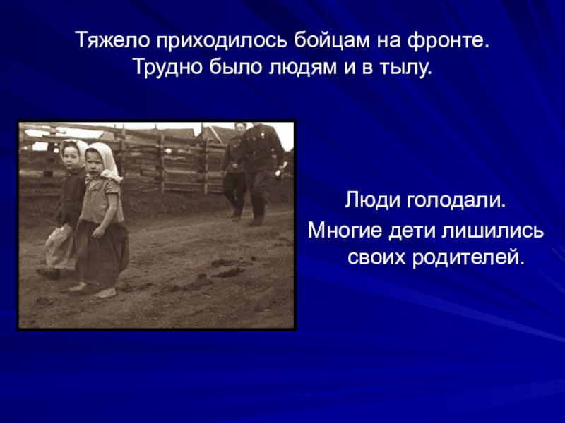 Слайд 13 Тяжелее всего приходилось во время войны