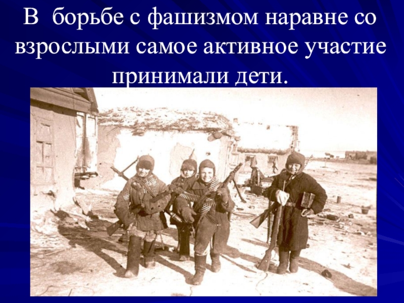 Слайд 17В борьбе с фашизмом наравне со взрослыми самое активное участие принимали