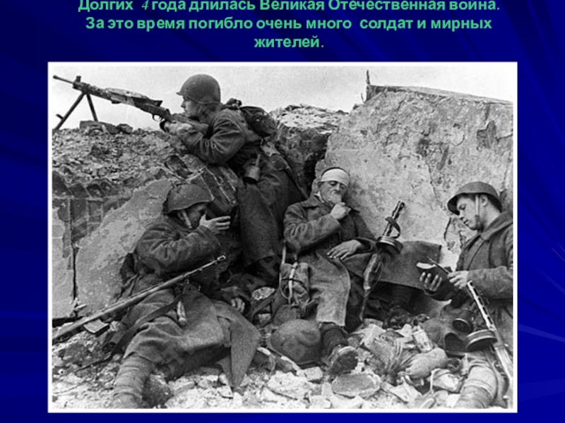 Слайд 31Долгих 4 года длилась Великая Отечественная война.