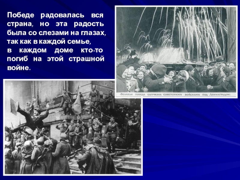 Слайд 37Победе радовалась вся страна, но эта радость была со слезами на