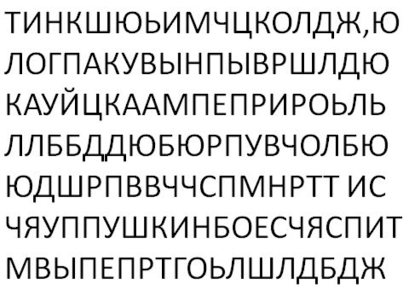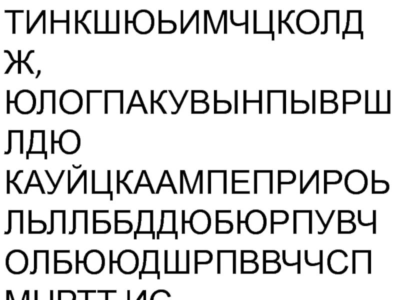 Слайд 16ТИНКШЮЬИМЧЦКОЛДЖ,ЮЛОГПАКУВЫНПЫВРШЛДЮ КАУЙЦКААМПЕПРИРОЬЛЬЛЛББДДЮБЮРПУВЧОЛБЮЮДШРПВВЧЧСПМНРТТ ИС ЧЯУППУШКИНБОЕСЧЯСПИТ МВЫПЕПРТГОЬЛШЛДБДЖ