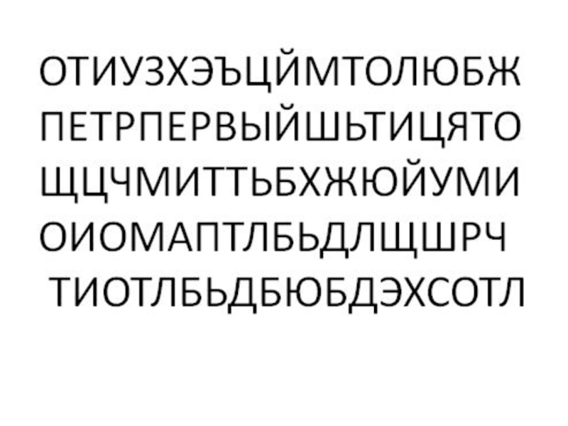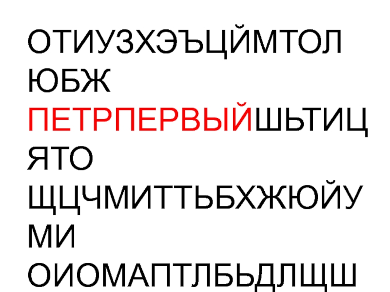 Слайд 9ОТИУЗХЭЪЦЙМТОЛЮБЖ ПЕТРПЕРВЫЙШЬТИЦЯТО ЩЦЧМИТТЬБХЖЮЙУМИ ОИОМАПТЛБЬДЛЩШРЧ ТИОТЛБЬДБЮБДЭХСОТЛ