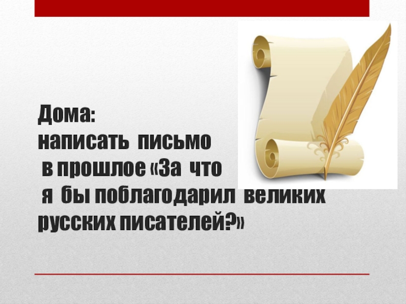 Слайд 14 Дома: написать письмо в прошлое «За что я бы поблагодарил
