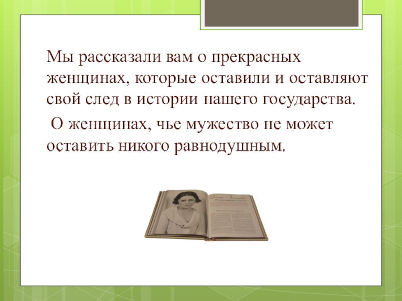 Слайд 8Мы рассказали вам о прекрасных женщинах, которые оставили и оставляют свой