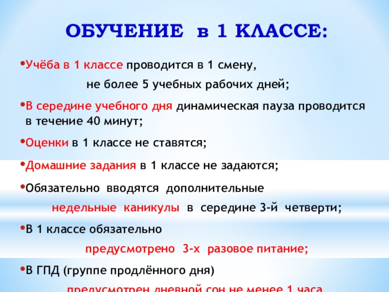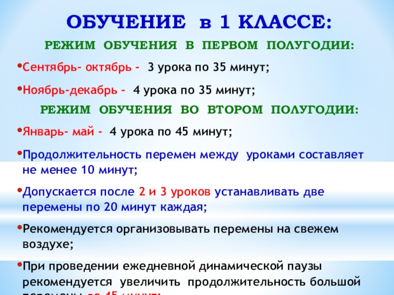 Для обучающихся 1-х классов наиболее трудные предметы должны проводить на 2 –м уроке.