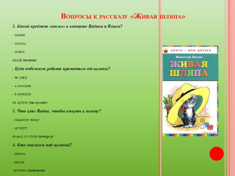 Слайд 12Вопросы к рассказу «Живая шляпа»