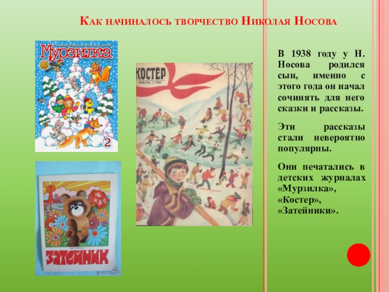 Как начиналось творчество Николая Носова   В 1938 году у Н. Носова родился сын, именно с