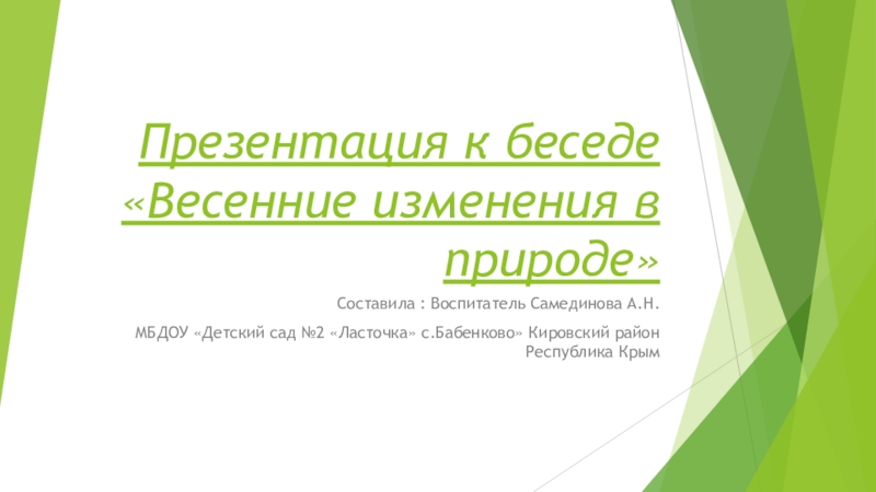 МБДОУ «Детский сад №2 «Ласточка» с.Бабенково» Кировский район Республика Крым