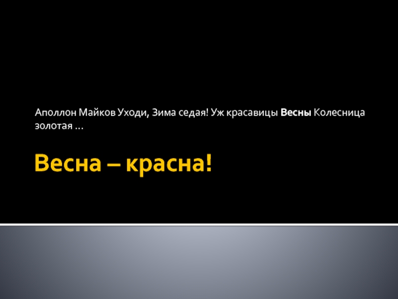 Весна – красна!Аполлон Майков Уходи, Зима седая! Уж красавицы Весны Колесница золотая ...