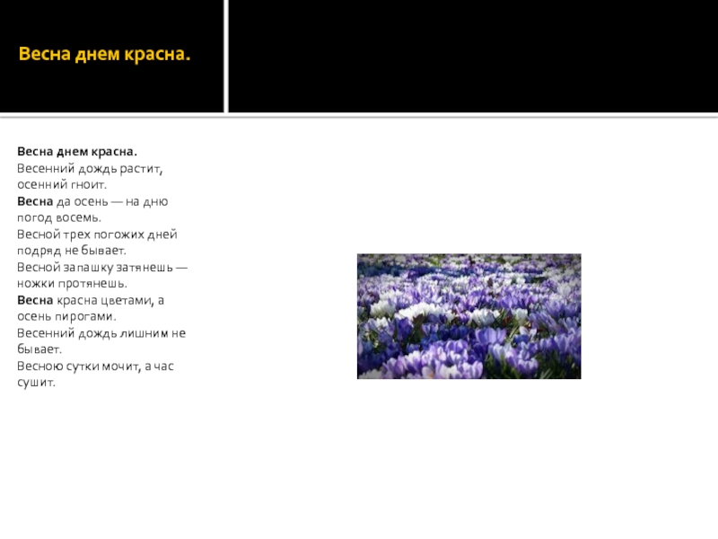Слайд 5Весна днем красна.