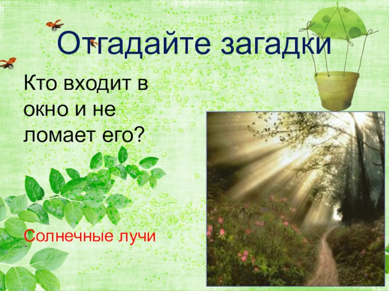 Отгадайте загадки Кто входит в окно и не ломает его?Солнечные лучи