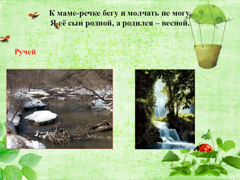 Слайд 8 К маме-речке бегу и молчать не могу, Я её сын родной, а
