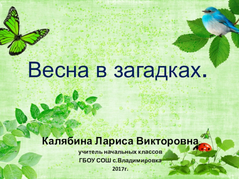 Весна в загадках.Калябина Лариса Викторовнаучитель начальных классовГБОУ СОШ с.Владимировка2017г.