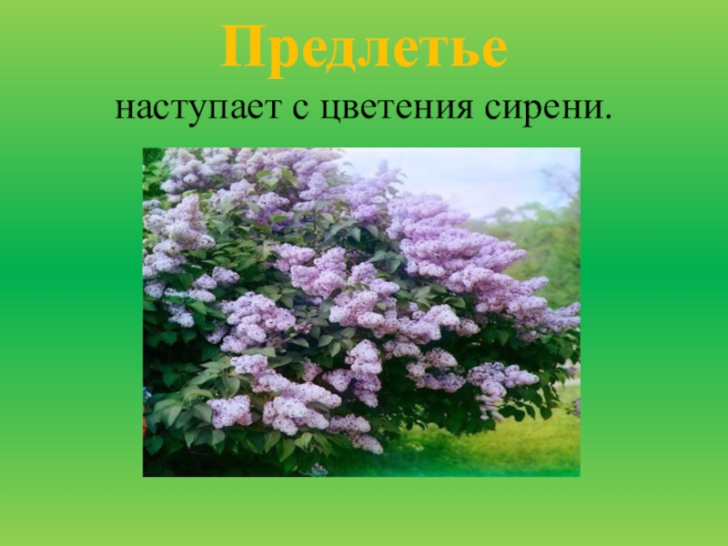Слайд 21Предлетье наступает с цветения сирени.