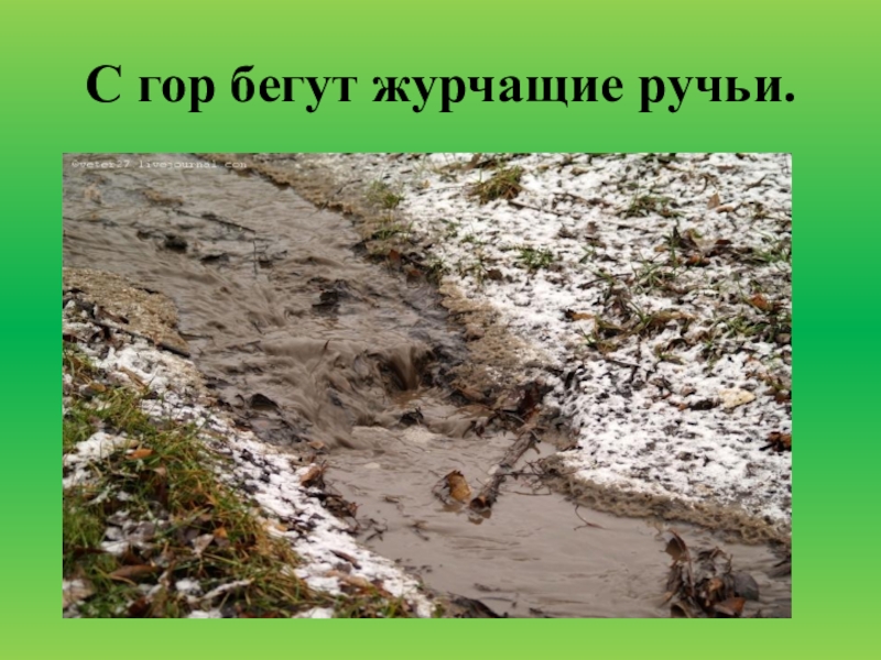 Слайд 14С гор бегут журчащие ручьи.