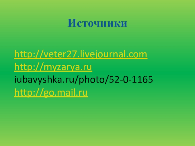 http://veter27.livejournal.com http://myzarya.ru iubavyshka.ru/photo/52-0-1165 http://go.mail.ru Источники