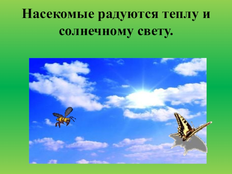 Слайд 9Насекомые радуются теплу и солнечному свету.